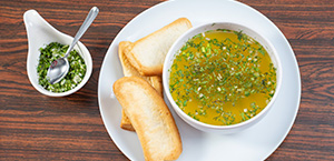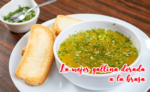 Espectacular caldo de Gallina Don Pascual, recomendado como entrada.